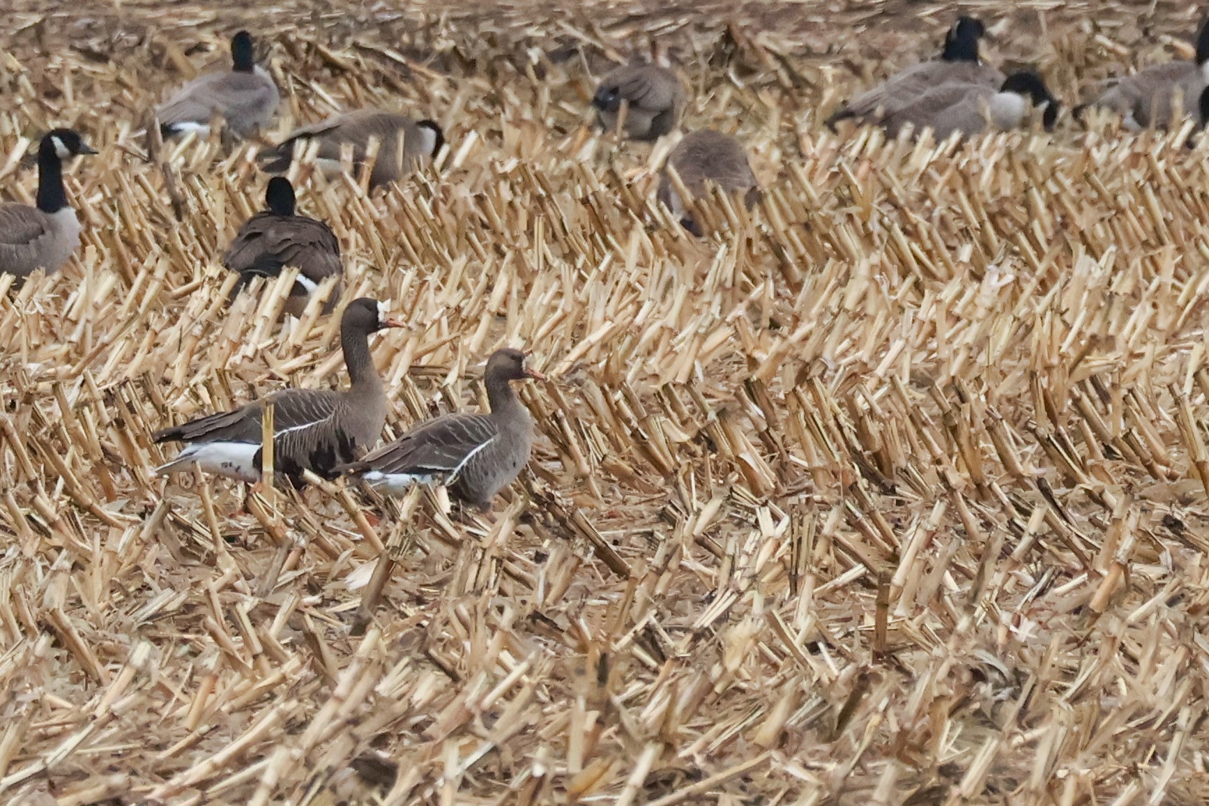 Photo of White-fronted Geese among Canadas by Wendelin Long on March 29, 2025 near Barker, NY.
