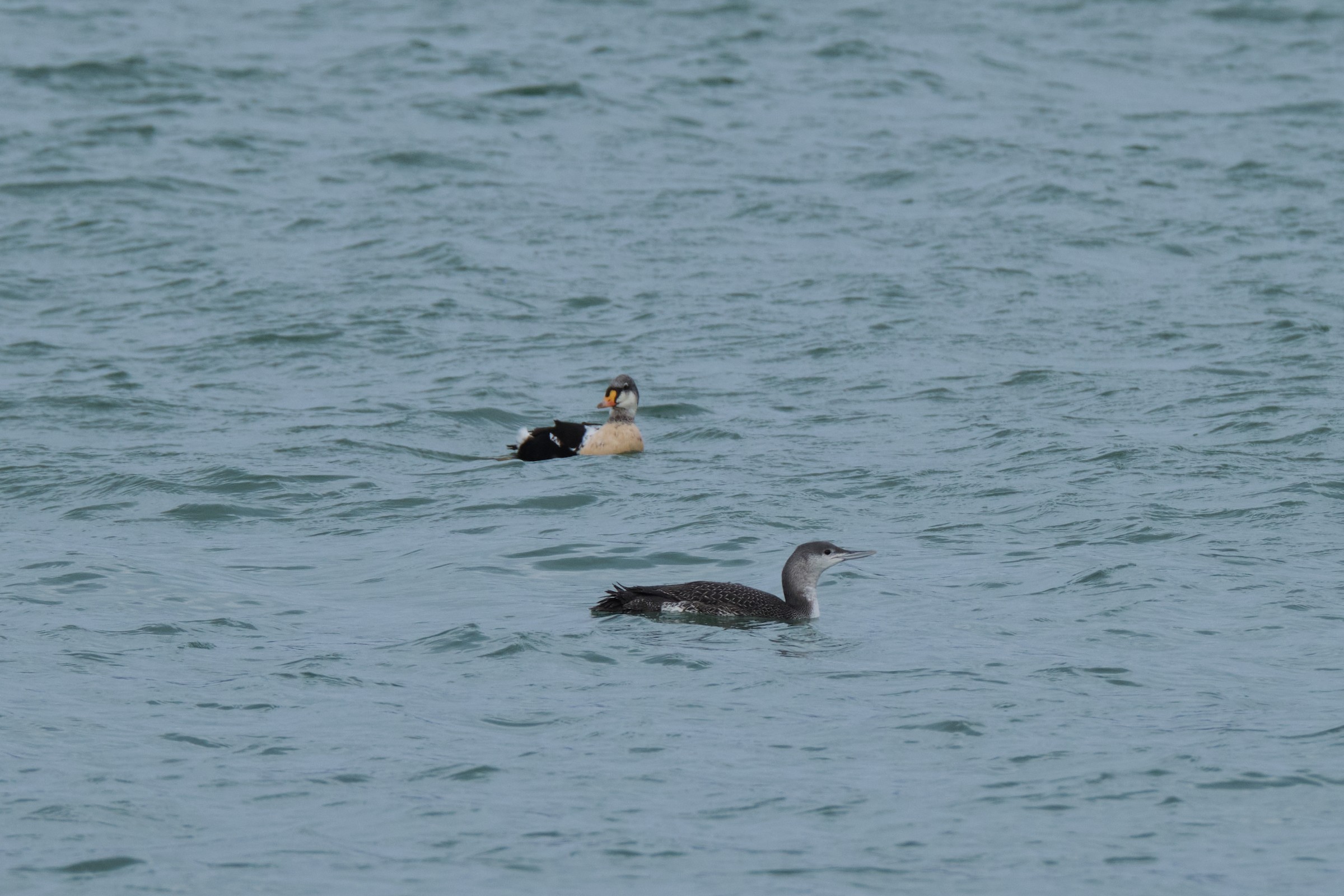 Male King Eider and a Red-throated Loon at Niagara-on-the-Lake December 26, 2021 by Nathan Miller.